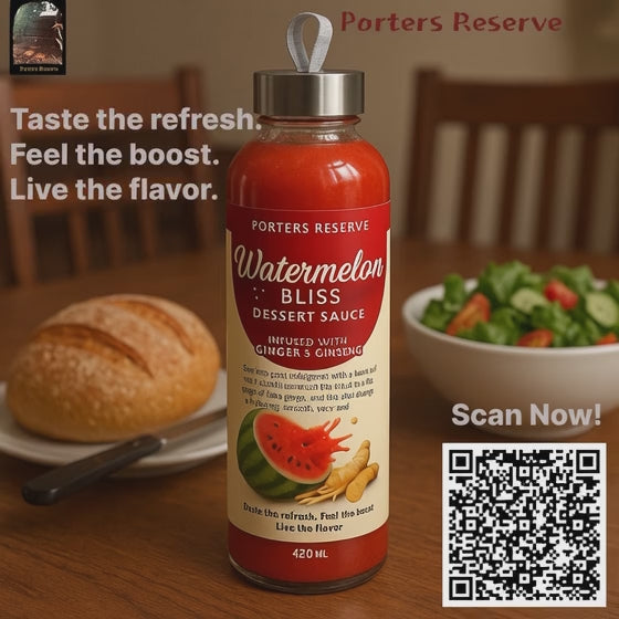 Crafted at Porters Reserve, a sustainable forestry farm in North Queensland, Watermelon Bliss Dessert Sauce delivers an invigorating fusion of ripe watermelon, aromatic ginger, and premium ginseng. Each 420 mL bottle contains only ethically sourced, high-quality ingredients, ensuring purity and environmental responsibility in every pour.